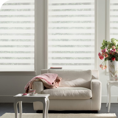 La Cortina Enrollable Duo es novedosa, moderna y decorativa. Sus distintas posiciones permiten apreciar delicadas franjas translúcidas que dejan pasar la luz y mantienen las visuales u obtener mayor privacidad. Disponibles en 9 colores y dos tipos de trama.